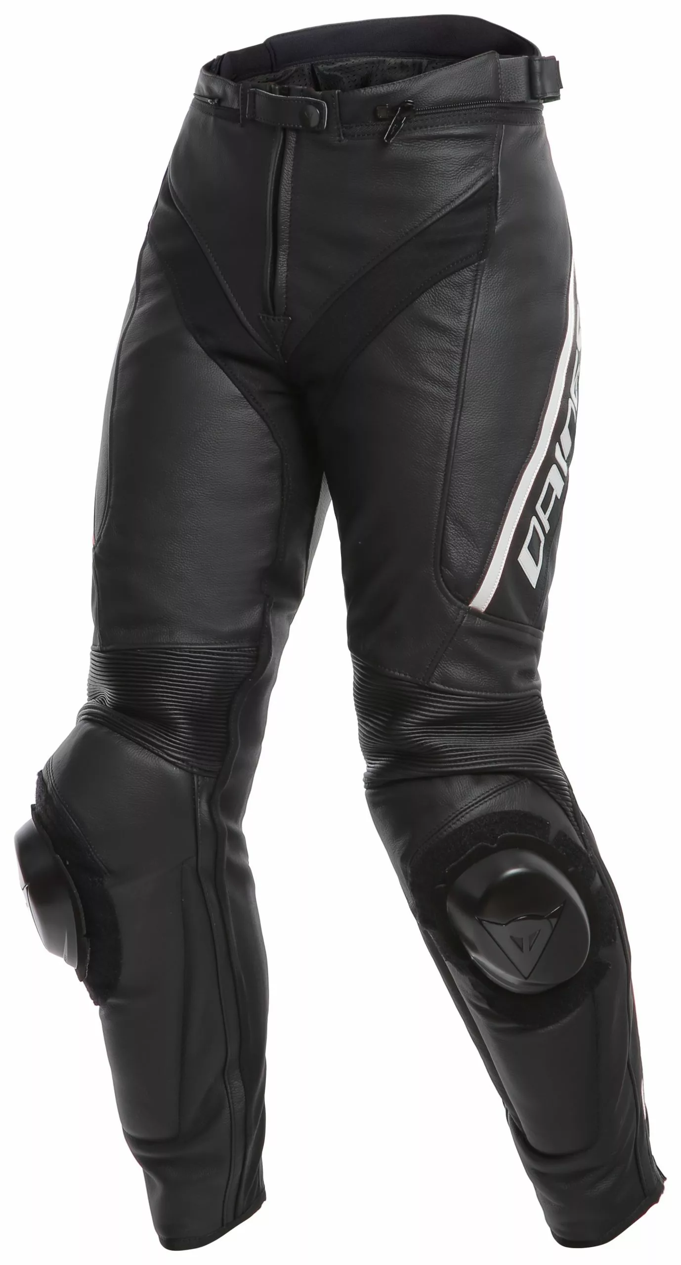 Designed for maximum agility, the Dainese Delta 3 Ladies Leather Pants use the same S1 bielastic fabric and Nanofeel Silver Ion liner found in top-tier Dainese race suits to keep you flexible and comfortable during aggressive riding. Tutu cowhide leather with CE certified protectors at the knees and hips supply track-level protection. Zip the Delta 3 Pants to your favorite Dainese jacket and let those interchangeable Pista knee sliders drag through the twisties.