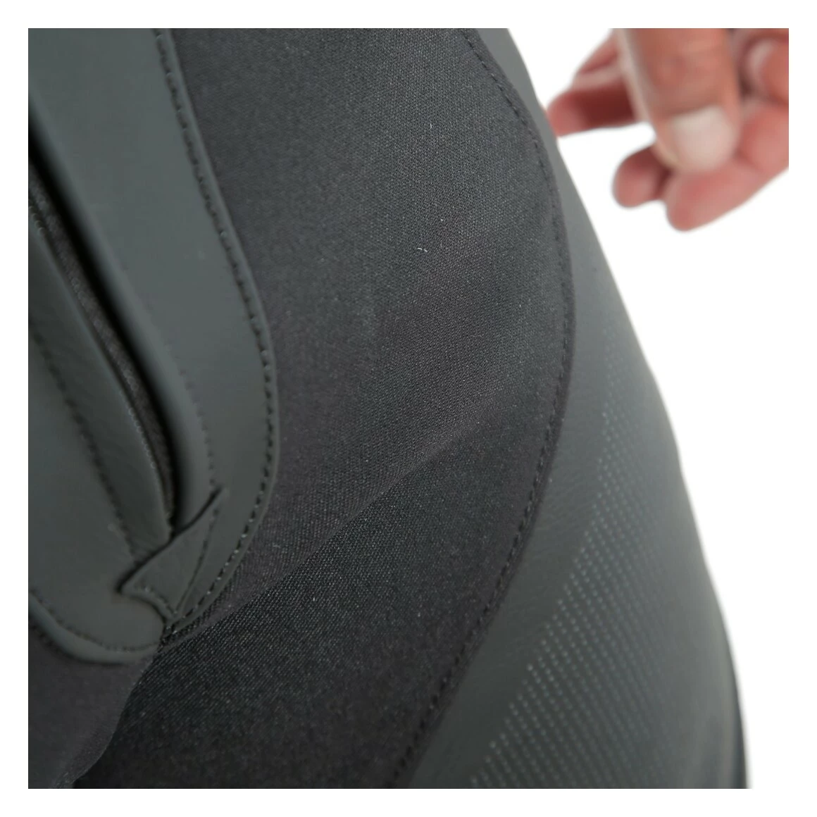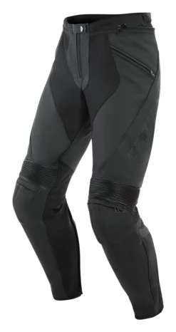 The Pony 3 Perforated Pants take the design and technology from Dainese’s highest spec racing leathers and transform them into a comfortable street- and touring-ready pant. Constructed from Tutu cowhide and stretch panels of S1 bielastic fabric, the Pony 3 Pants comfortably suit a wide range of riders  – from early a.m. canyon carvers to touring enthusiasts running tank to tank. When ambient temps climb, panels of perforation and the Nanofeel liner help riders keep their cool. External reinforcement at the knee is leather. Internally,  Pro-Shape hip armor and removable composite knee protectors are included, and the garment itself meets prEN 17092 certification as motorbike protective pants. Â