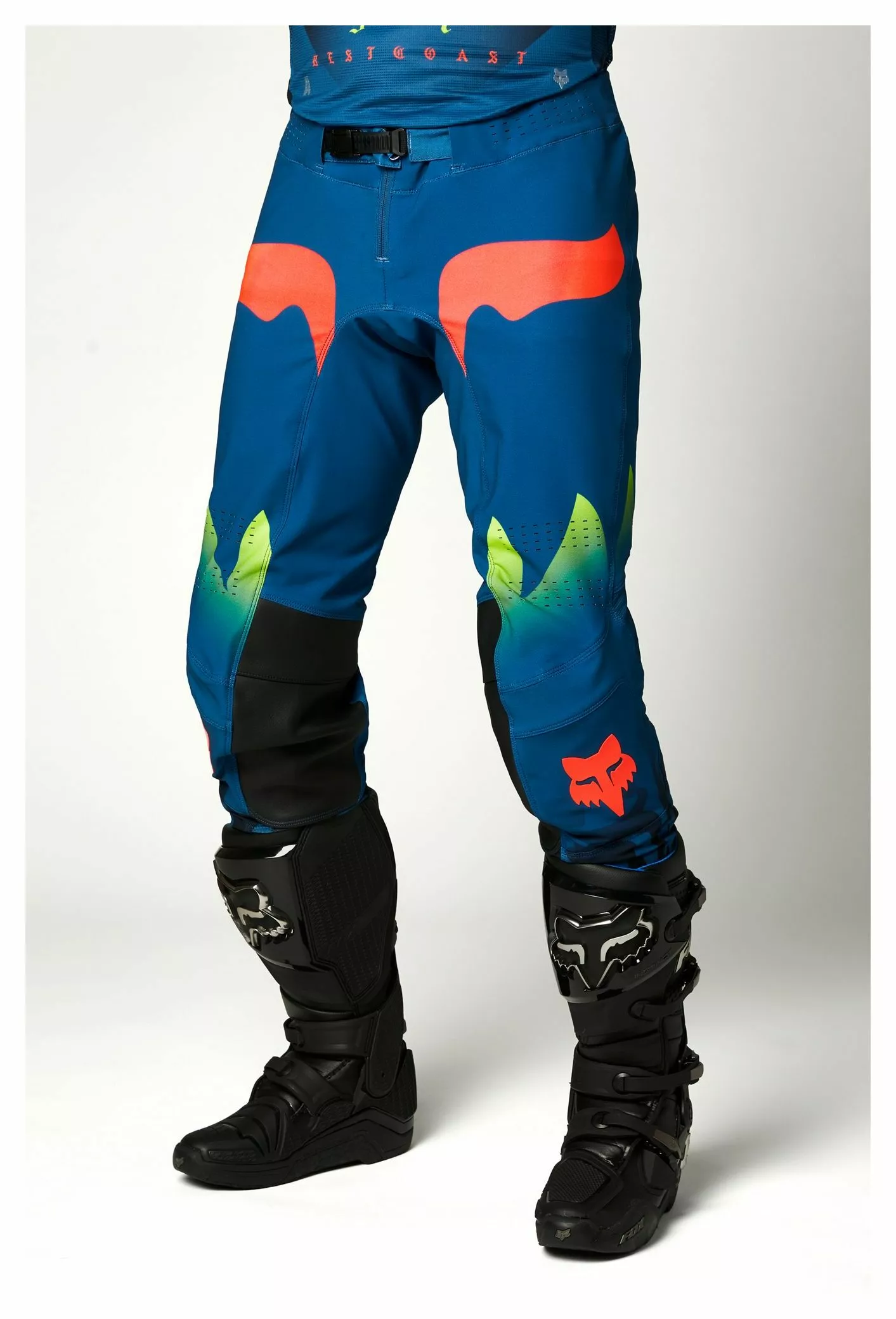 The Flexair Mawlr Pants prove that blue is the new fast. With a classic heat transferred Fox head logo this style matches nearly any jersey and never goes out of style. The main body is cut from durable, 4-way stretch TruMotion® fabric for unmatched mobility. And an innovative knee design provides a sleek performance fit over braces by removing excess material, eliminating binding, and improving articulation.