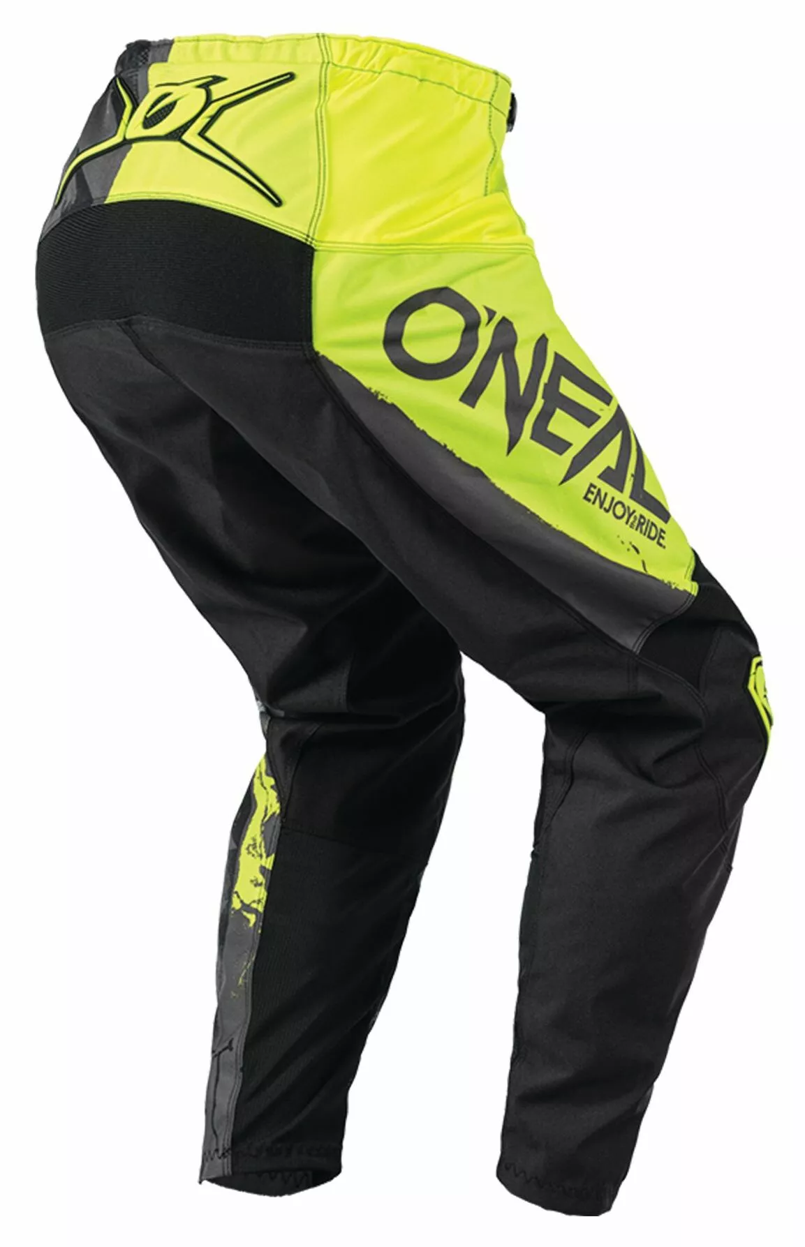 The O’Neal Element family is a durable line of off-road riding gear cut with a more roomy, comfortable fit – for the rider who gets out there early and often. The Youth Element Ride Pants feature a balance of wear-resistant impact zones and highly breathable, perforated main body construction. The regular fit features stretch zones at the knees, pelvis and seat ensure mobility and comfort when wearing knee braces or armored under layers. An adjustable waist and tapered leg reduces bulk and keeps your ride unencumbered. Reduced overall weight for hot weather riding is backed-up with reinforced layers at the knees, inner legs and seat in case of impact or engine heat.Â