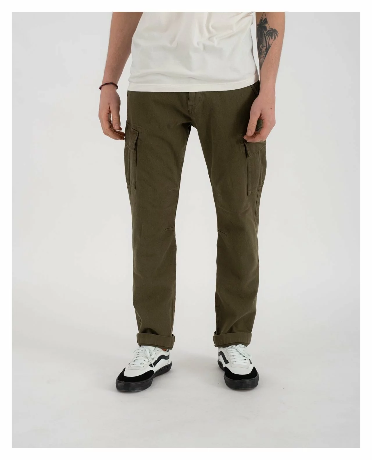 - Cool casual look in washed olive green