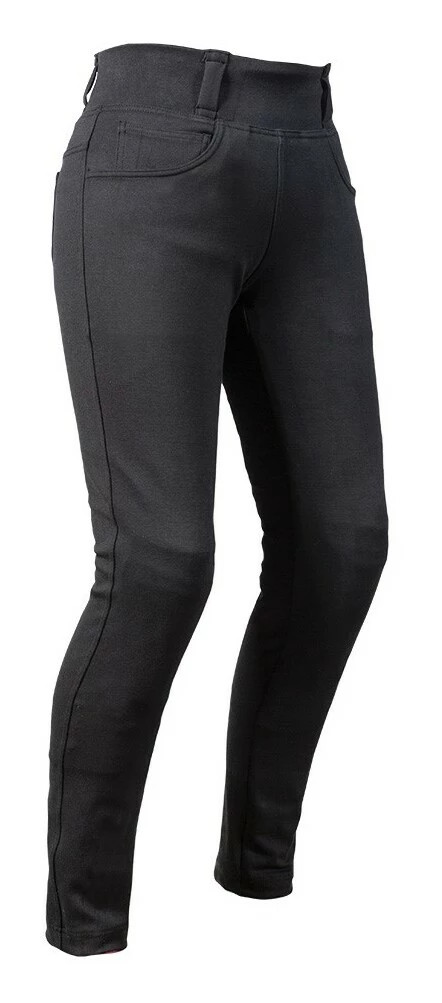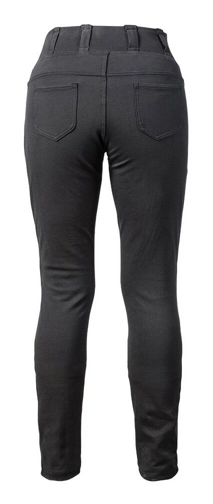 The high rise waist lends itself to motorcycle riding in any position. Five pocket styling is for more than just looks since these pockets are functional and can actually hold stuff.