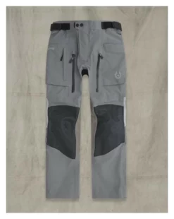 Belstaff takes a modern leap into technical adventure gear with the Long Way Up Gore-Tex Pants. These trousers start with a waterproof yet breathable shell of Gore-Tex Pro three layer laminated fabric. Superfabric overlays at the knees guarantee a level of abrasion resistance that is ready for highway slides and low speed dives, time after time. During high exertion off-road efforts, oversized thigh vents make the most of low speed airflow. These vents, the asymmetric hip pockets and the main fly are all secured with YKK waterproof zippers. At the inner leg, the rider finds heat and abrasion panels finished in contrasting suede cowhide – giving a traditional nod to riding gear of the past.