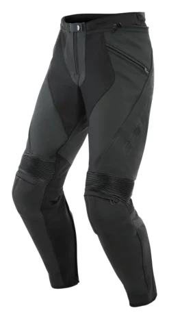 The Pony 3 Pants take the design and technology from Dainese’s highest spec racing leathers and transform them into a comfortable street- and touring-ready pant. Constructed from Tutu cowhide and stretch panels of S1 bielastic fabric, the Pony 3 Pants comfortably suit a wide range of riders – from early a.m. canyon carvers to touring enthusiasts running tank to tank. External reinforcement at the knee is leather. Internally, Pro-Shape knee and hip protectors are included, and the garment itself meets prEN 17092 certification as motorbike protective pants.