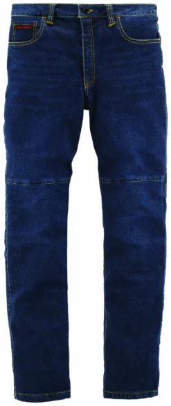Dress casual while riding with protective jeans to match with any jacket. The Icon Uparmor jeans feature a sport fit with a durable chassis and a stretch denim with internal reinforcements and D3O knee armor for added protection.Â