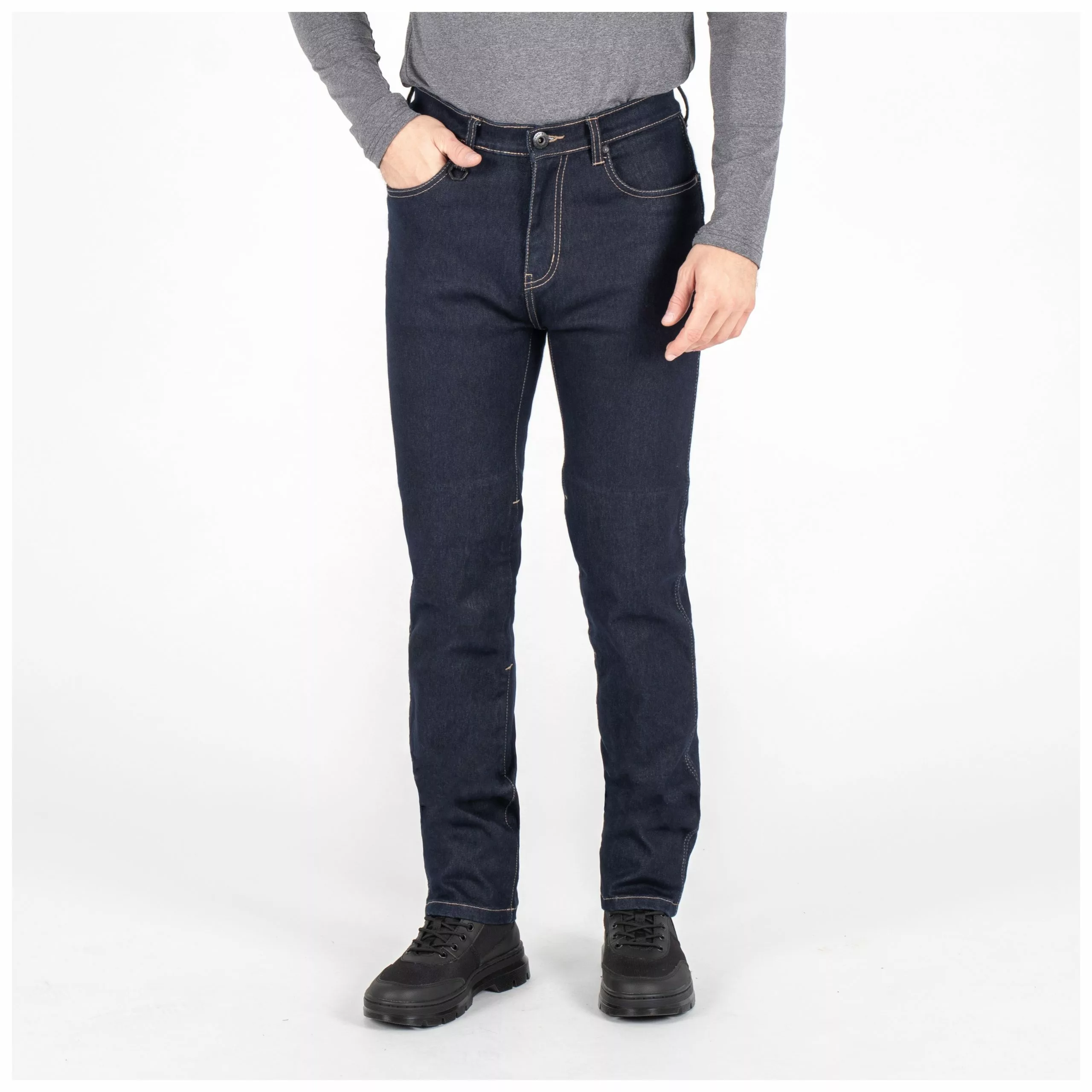 The jeans benefit from four-way stretch, light water repellency and natural cooling properties from this extra special UHMWP denim formulation. The jeans sport a timeless design with deep indigo dyes, contrast stitching and a moderately tapered straight cut. Micro-Lock knee and hip armor is included, and knee armor is accessed externally for quick removal at your destination. The search for the best riding denim goes no further.