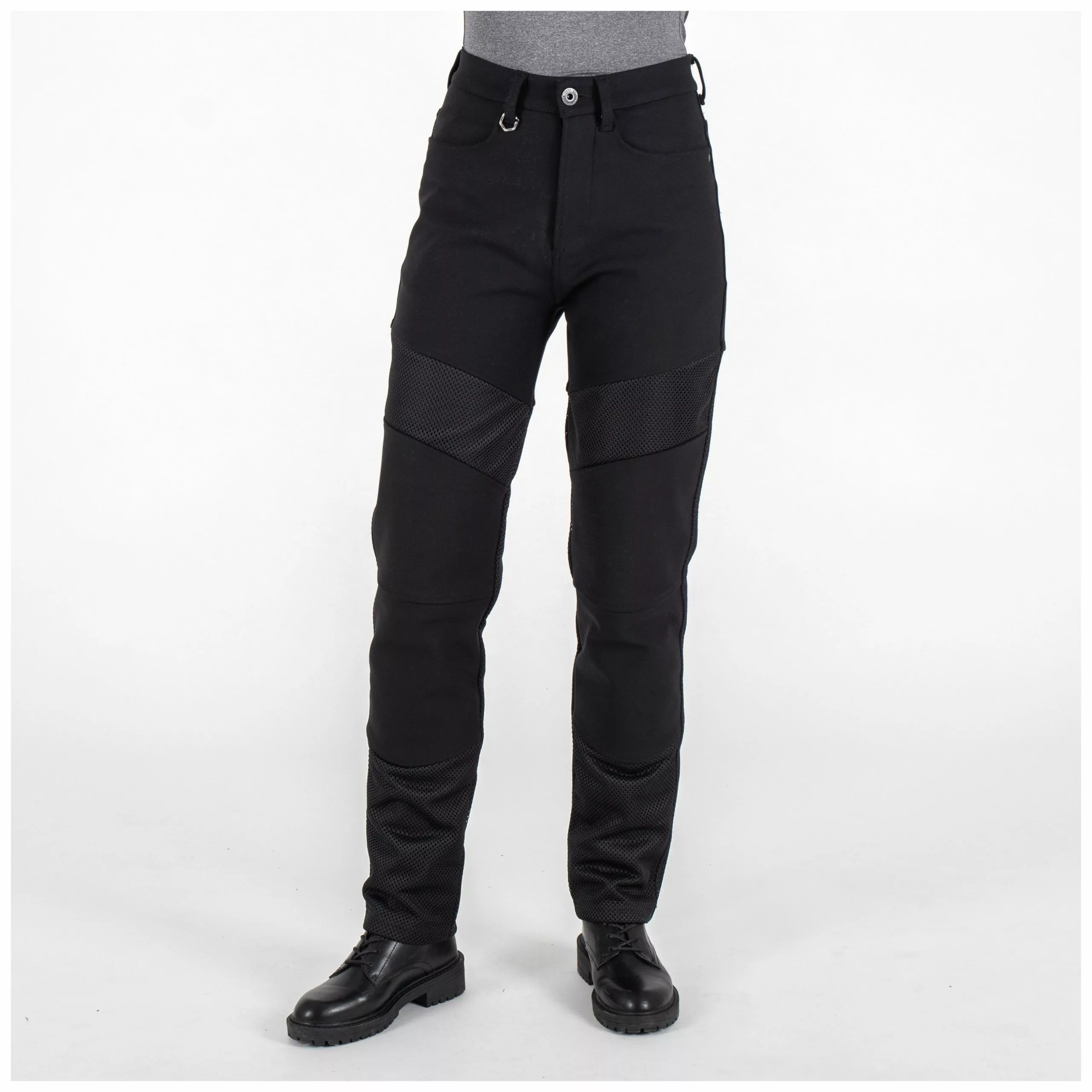 The Knox Urbane Pro Women’s Pants are a highly breathable summer trouser with added stretch and high-performance abrasion resistance. All the bulkiness, weight and heat associated with heavy textile trousers has been avoided. The Urbane Pro Women’s Pants are the perfect pair of motorcycle trousers to wear in any hot environment, allowing riders to focus on the road ahead rather than being distracted on the bike by hot and heavy gear. The pants have been well tailored with breathable mesh panels discreetly positioned front and back to give maximum air flow on the bike. Deep pockets on the front and back and a discreet, smart zipped side pocket for storage of items that could otherwise tend to fall out of standard back pocket. This pocket has been placed in a comfortable riding position.