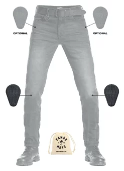 The Robby Cordura Jeans use a heavy 12 ounce Cordura denim construction in a classic five-pocket design. Elastane is blended into the denim for some stretch to improve on-the-bike ergonomics and off-the-bike comfort. Impact areas receive a full aramid lining for further abrasion resistance that the rider can count on. Impact armor at the knees is included. Oversized belt loops and a front key ring keep your gear in check.