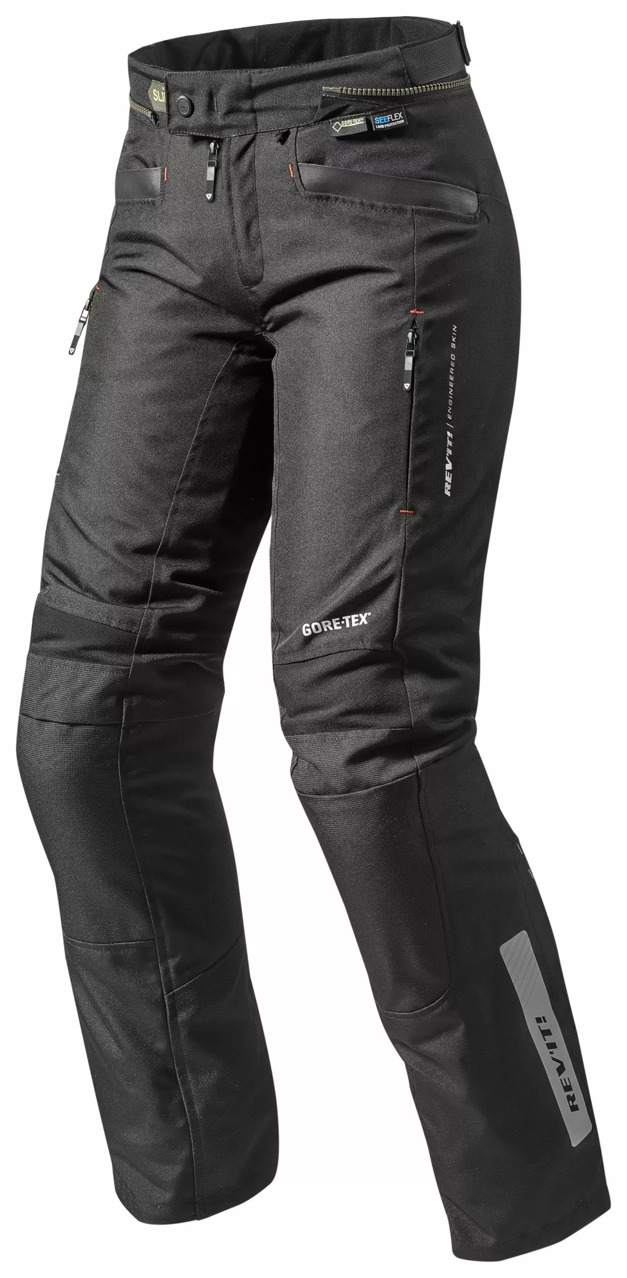 The Rev’It! Neptune GORE-TEX Women’s Pants are year ’round riding juggernauts. This pant features three layers to maximize comfort no matter what season you’re riding in. The Teflon coated 600D Polyester shell is backed up by a full-length Gore-Tex removable liner to keep wind and water from reaching your skin. A separate thermal liner is also included to allow you to ride down into the lower temperatures without thinking twice. When the mercury starts to rise, simply pull those liners out and open up the zippered vents to allow maximum airflow. Whether you’re looking for a pant to get you through that year round commute or need a pant that can tackle the varying weather conditions on your next moto adventure, the REV’IT! Neptune Pants have everything you need to keep you comfortable and safe.