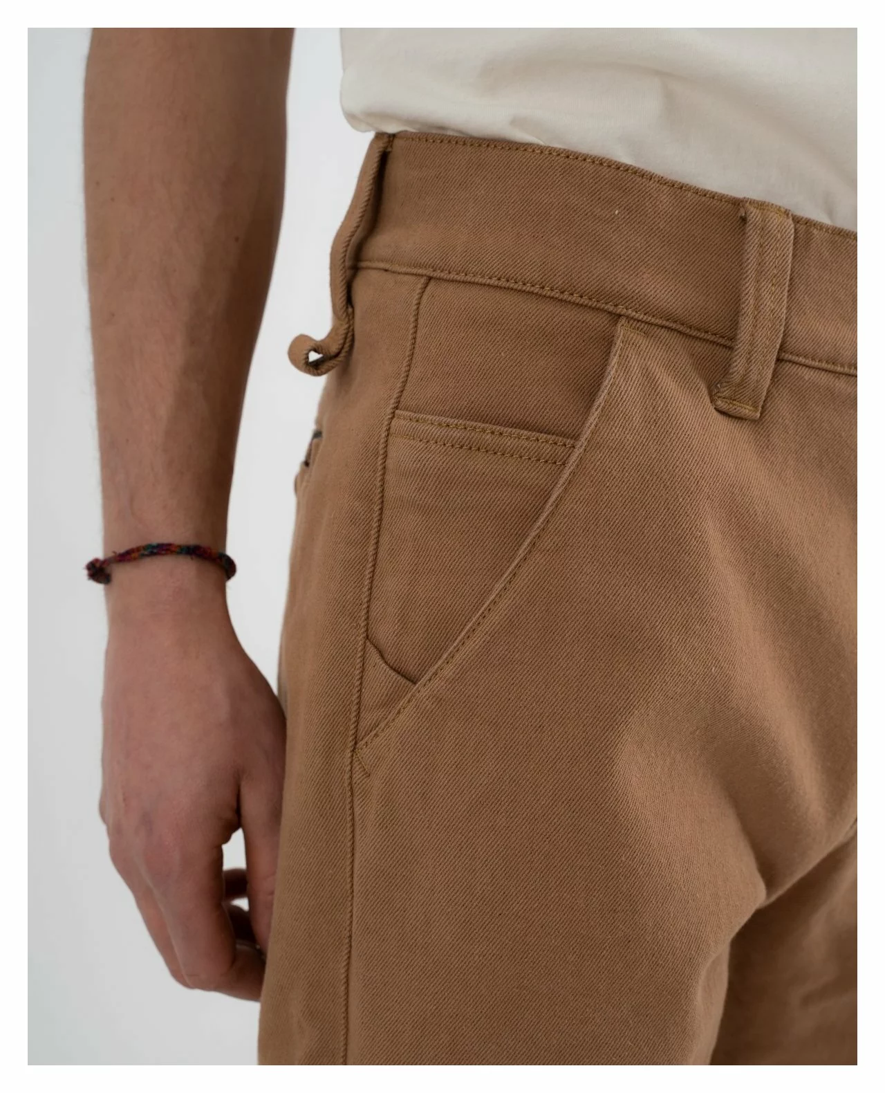 - Highly abrasion resistant, single layer garment dye twill with stretch (80% Cotton, 13% Polyamide, 6% Dyneema, 1% Elastane)
