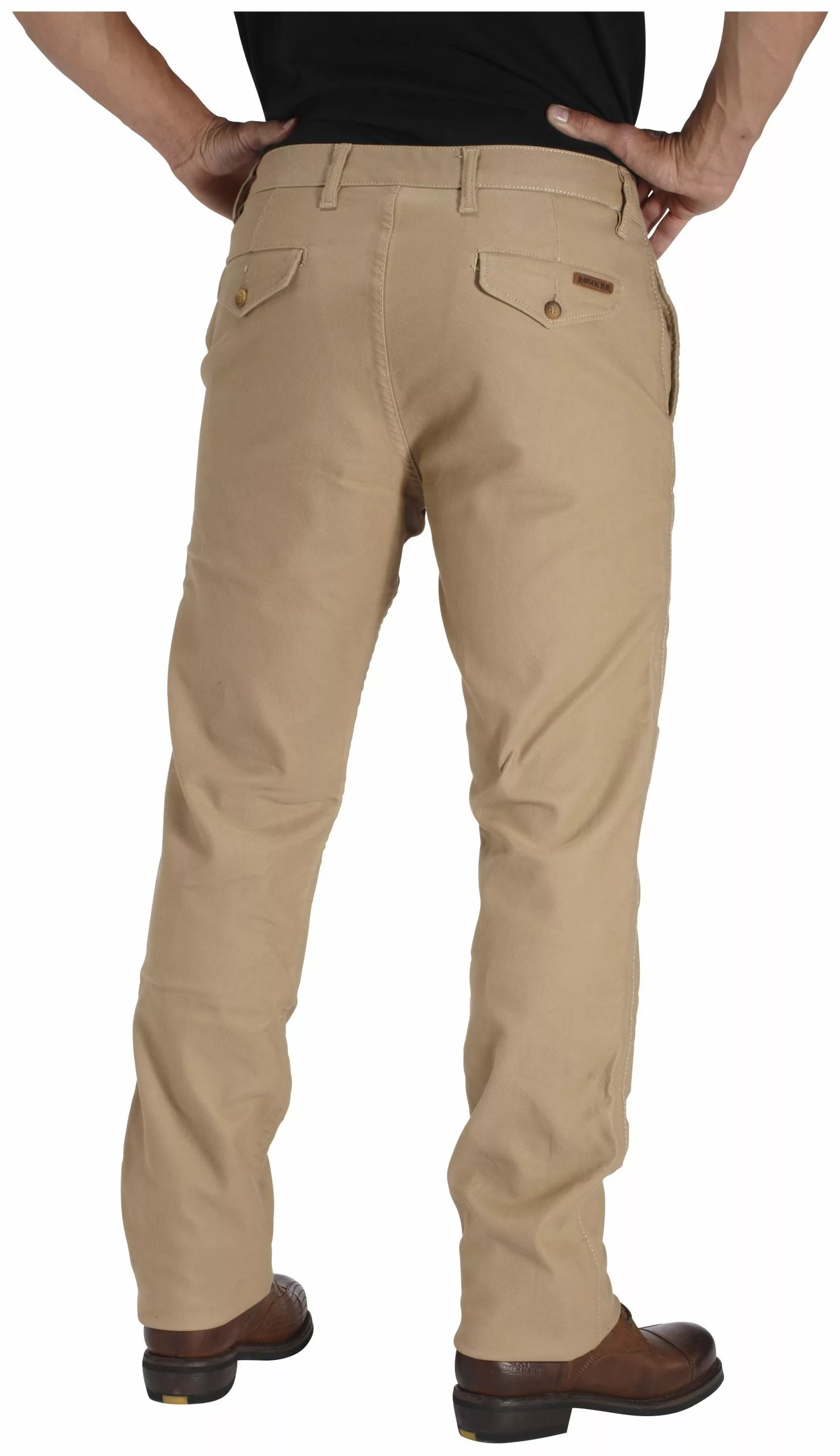 Rokker set a new standard with their 100% Schoeller-Dynatec riding jeans and now they are poised to give the commuting crowd something to celebrate with the Rokker Riding Chinos. These plain front pants pack a wallop, constructed with 100% Schoeller-Dynatec and reinforced with Schoeller-Dynatec armor pockets at the knees and hips. The Schoeller-Dynatec material not only provides a high level of abrasion resistance, but also helps keep out wind and water, making these chinos the ultimate business casual commuter pant.