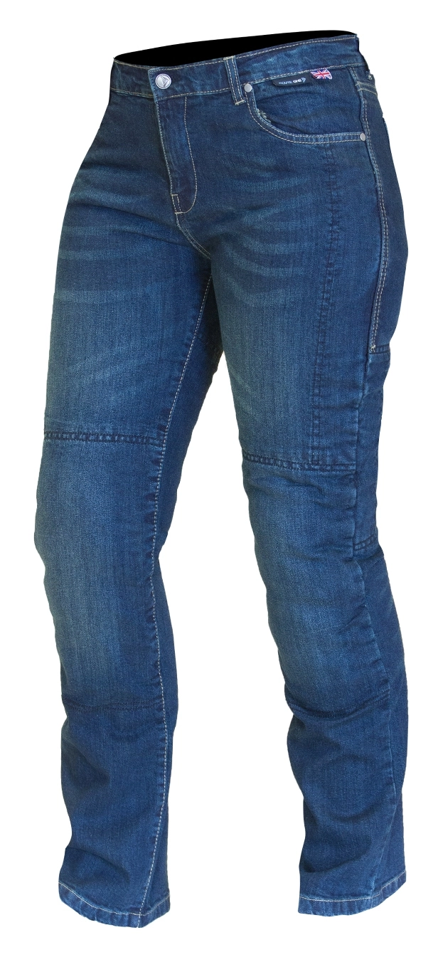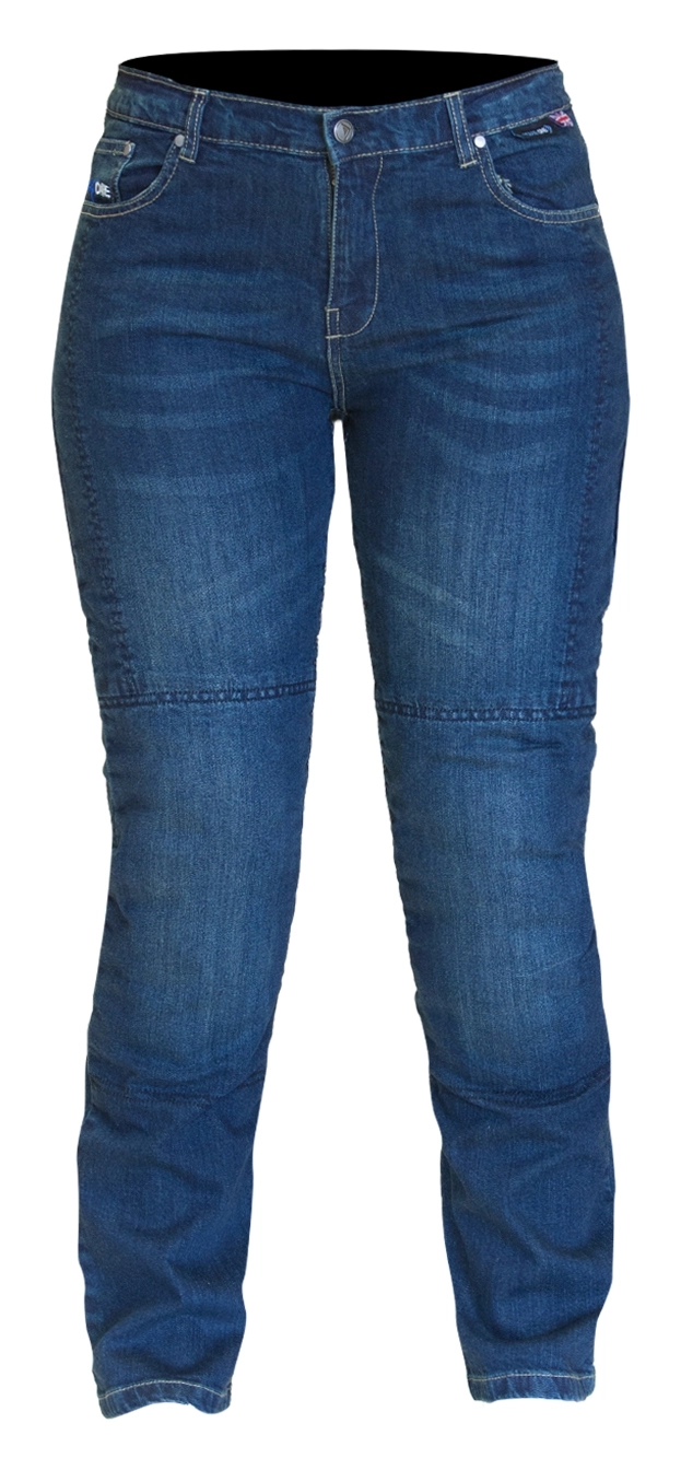 Route One denim offers unique styling that Merlin improves upon by adding in motorcycle specific features. The Merlin Olivia Women’s Jeans are cut especially to fit the female form. DuPont™ Kevlar® lining safeguards against abrasion and CE rated knee armor protects your bony bits. Hip armor can be added in to upgrade the protection.Â