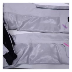 - Adjustability: adjustment straps at waist, adjustment tab at ankles